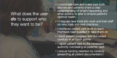 A variety of roles are sought for most testing. In the case of CDP we really were only focusing on Care Coordinators and Managers.