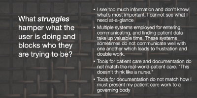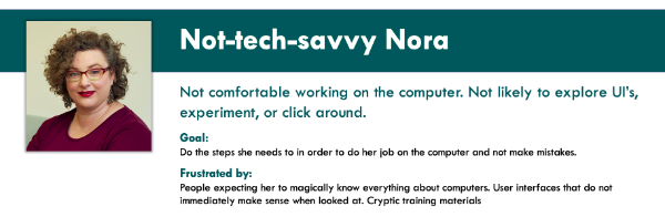 Discuss how these choices will work for personas. Will Not-tech-savvy Nora understand this? Will this make Resouceful Rebecca's work easier? Will this help Empathetic Emily to see what she needs to easily so she can do patient care?
